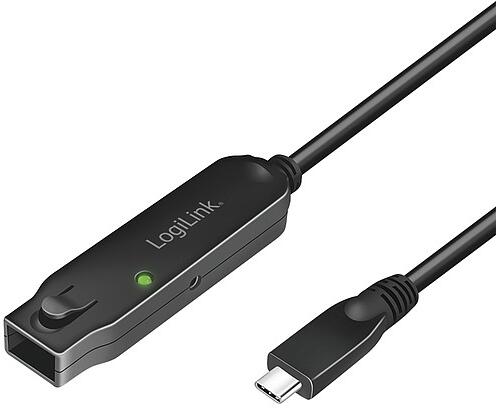 LogiLink USB 3.2 Gen2 kábel, USB-C/M-USB-C/F, erősítő, fekete, 5 m (UA0418)